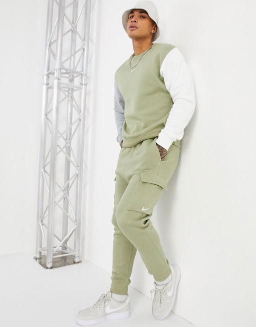 Nike - Træningssæt med farveblok-design i hvid og kaki