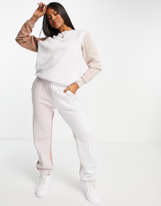 Nike - Træningssæt med metallisk swoosh-logo og neutralt farveblok-design
