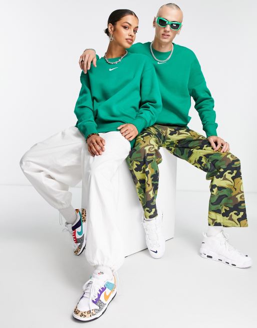 Nike - Unisex oversized sweatshirt med rund hals og mini-swoosh i malakitgrøn