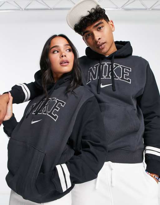 Nike - Unisex retro-college-hættetrøje i sort og hvid