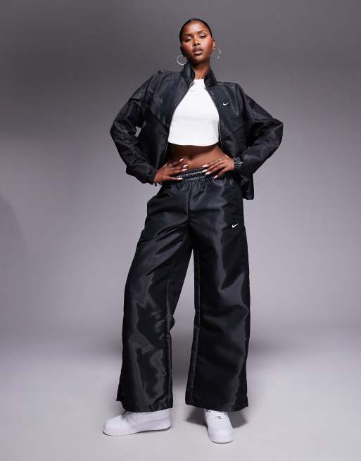 Nike - Windrunner - Sorte skinnende træningsbukser med flydende look