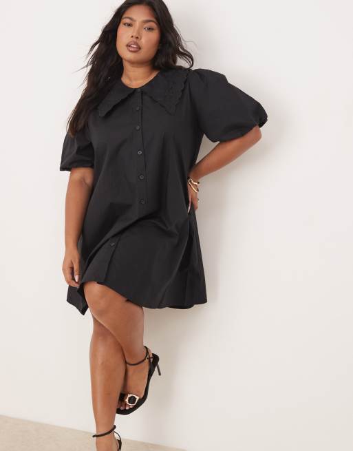 Nobody's Child Plus - Bridget - Sort mini-skjortekjole