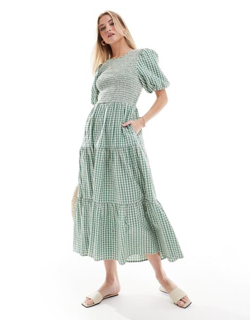 Nobody's Child - Charlie - Midaxi-kjole med grønt gingham-tern