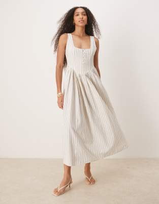 Nobody's Child - Cora - Cremefarvet cami-midikjole med dyb rund hals og striber
