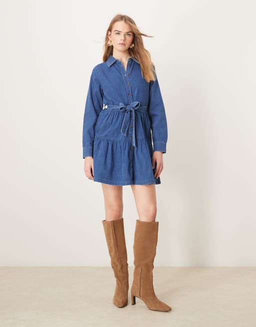 Nobody's Child - Ester - Langærmet mini-denimkjole i mellemvask
