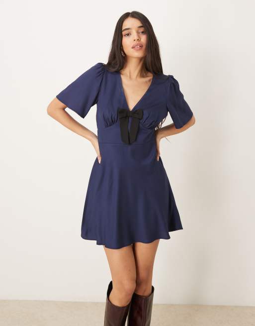Nobody's Child - Faith - Marineblå tea-minikjole med kontrasterende sløjfe