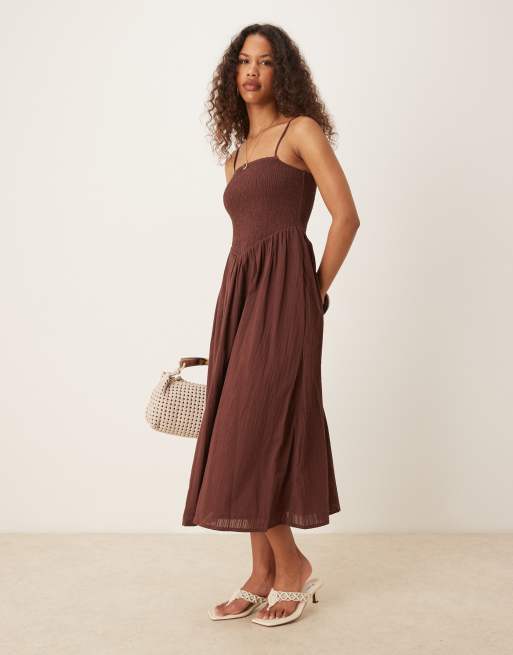 Nobody's Child - Imogen - Brun midikjole med V-talje og tynde stropper