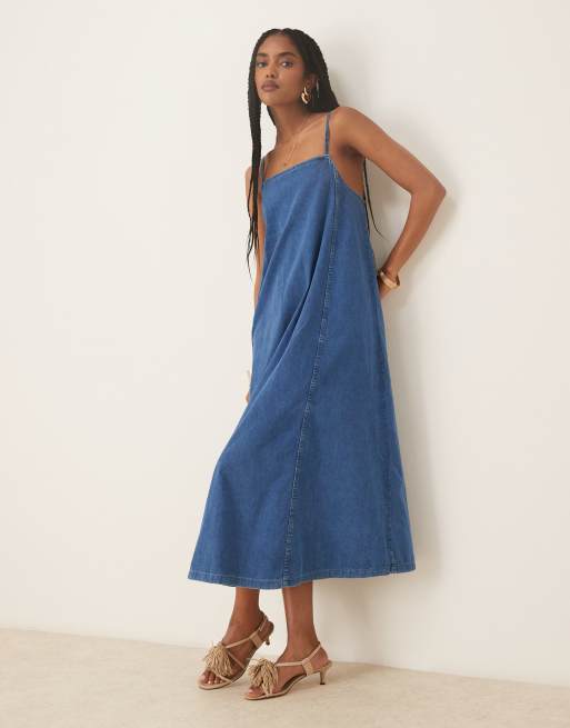 Nobody's Child - Jazmine - Mellemblå midikjole med trapez-form i denim