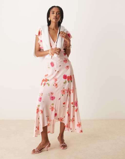 Nobody's Child - Loubelle - Pink midikjole med flæseærmer og blomstermønster