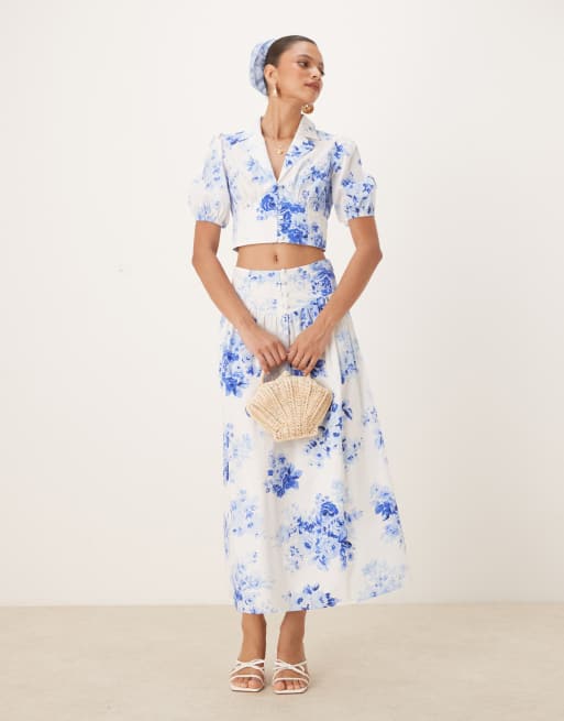 Nobody's Child - Madalena - Blå og hvid A-formet midinederdel - Del af sæt