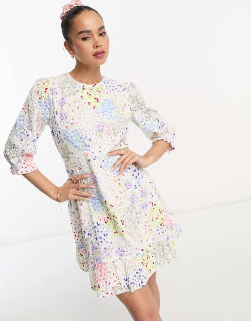 Nobody's Child - Serena - Minikjole med flæser og blomstermønster i broderie anglaise