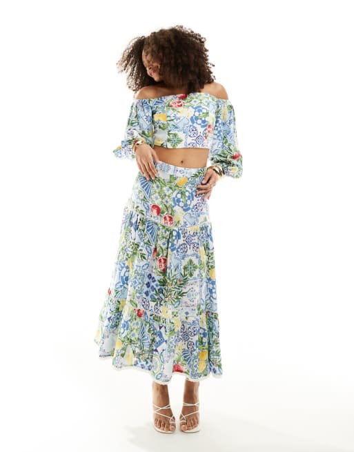 Nobody's Child - Sommersæt med croptop og lagdelt midaxi-nederdel med blomstermønster
