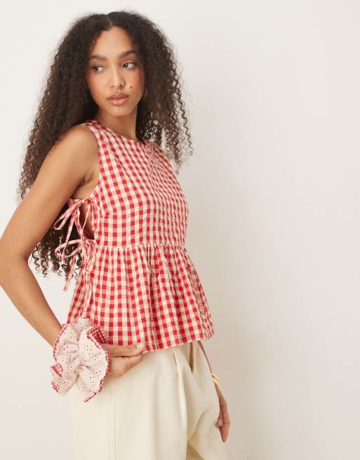 Nobody's Child - Valerie - Top med bindebånd i siderne og røde gingham-tern