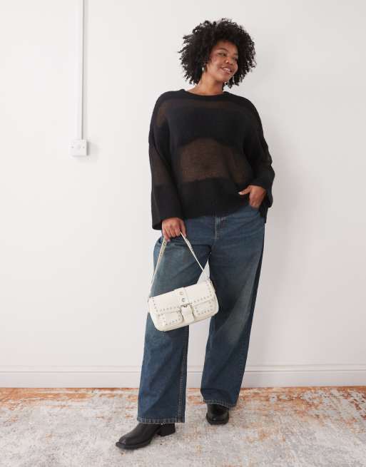 Noisy May Curve - Sort løstsiddende trøje med striber i gennemsigtig strik