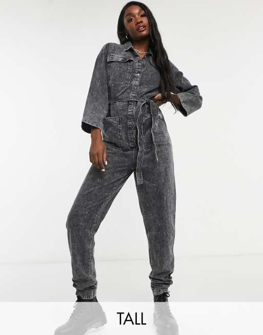 Noisy May Tall - Denim-jumpsuit i sort syrevask