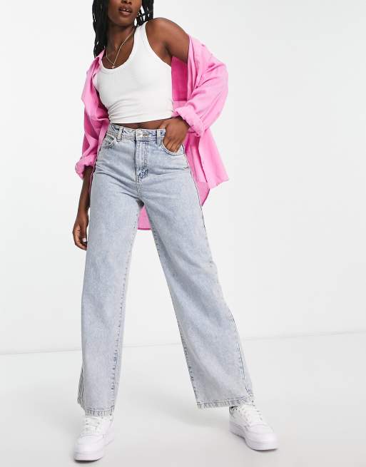 Noisy May - Højtaljede jeans med vide ben i lys vask