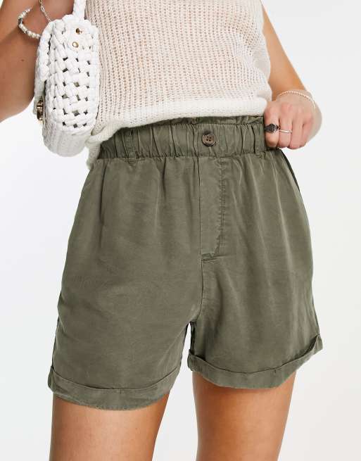 Noisy May - Højtaljede paperbag-shorts i kakigrøn