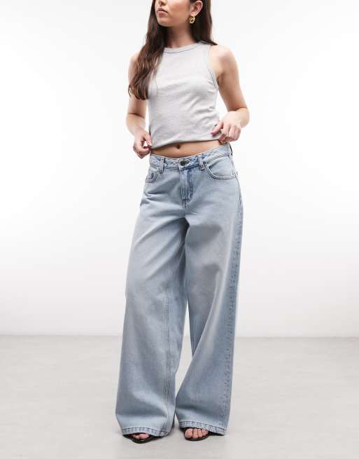 Noisy May - Lyseblå jeans med lav talje og vide ben i denim