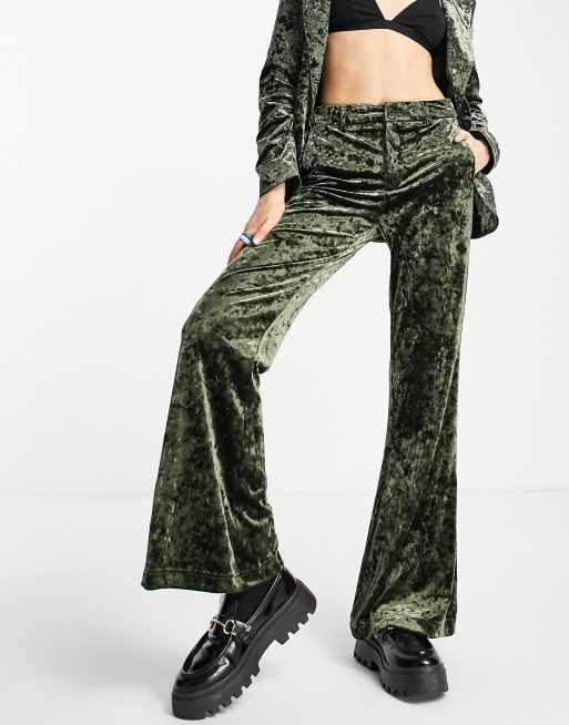 Noisy May - Mørkegrønne bukser i velour med svaj