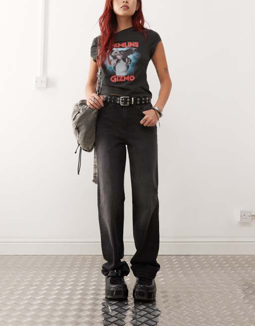 Noisy May - Pixie - Højtaljede boyfriend-jeans i forvasket sort