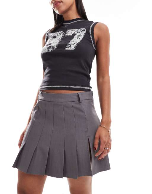 Noisy May - Plisseret nederdel med slids ved låret i grå