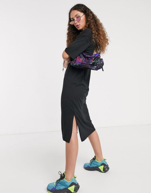 Noisy May - Sort T-shirt-midikjole med slids i siden