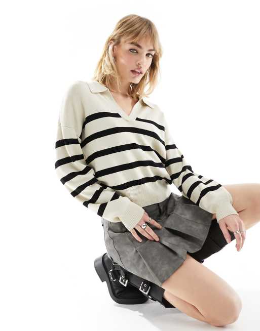Noisy May - Strikket polo med striber i havrefarve