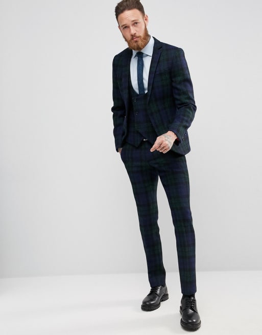 Noose & Monkey Harris Tweed Superskinny skotskternet habit i marinblå