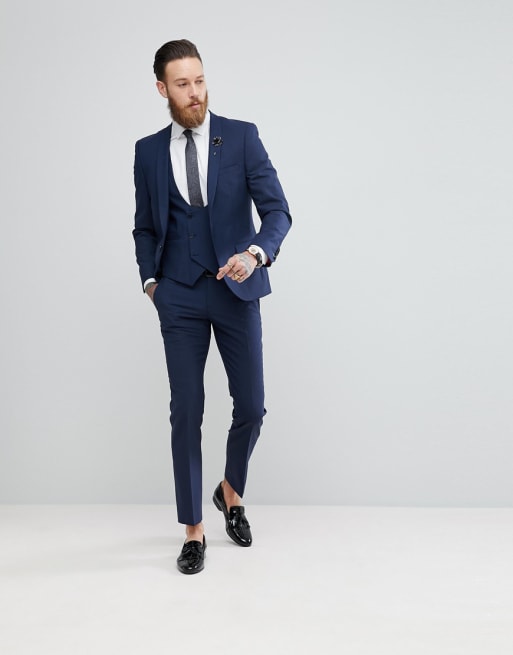Superskinny jakkesæt i navyblå uldblanding fra Noose & Monkey