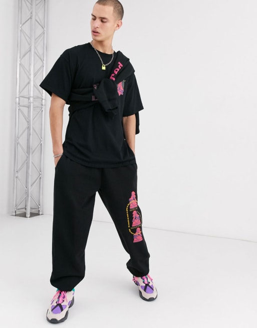 Nothing is Sacred - Pink t-shirt med print og sorte joggingbukser