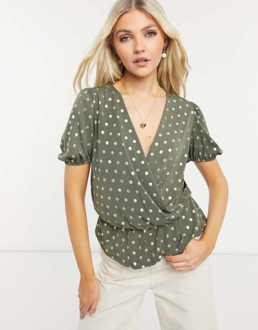 Oasis - Grøn slå om-top med print