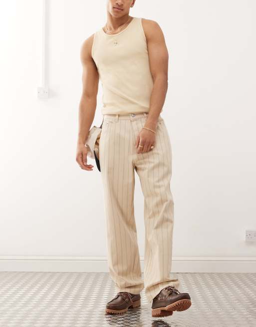 Obey - Classic - Beige posede jeans med striber