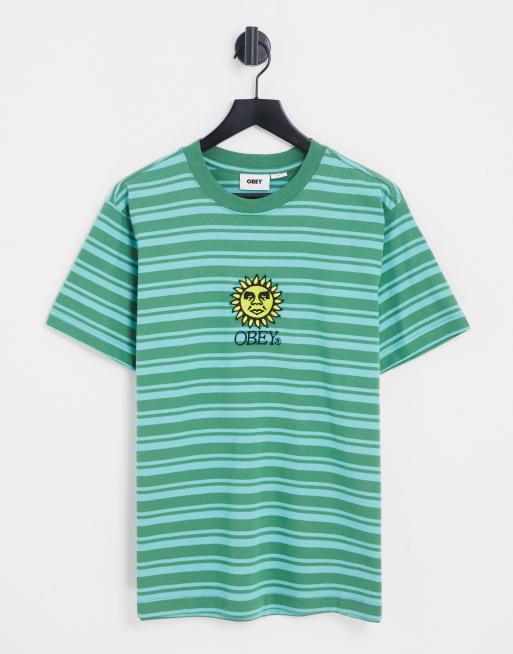 Obey - Kraftig grøn T-shirt med striber og solbrodering