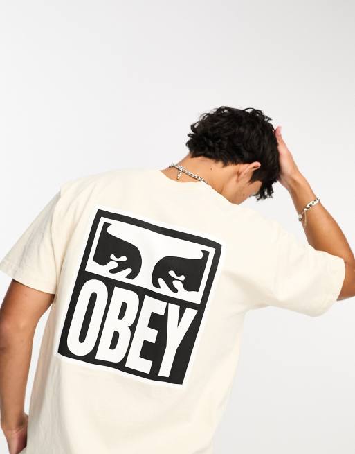 Obey - Råhvid T-shirt med øjne-ikonlogo