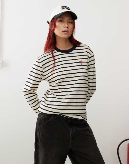Obey - Ramona - Langærmet hvid T-shirt med striber