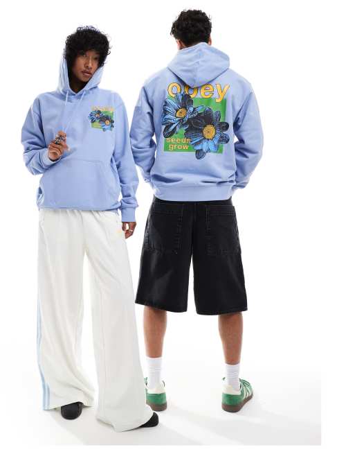 Obey - Unisex - Lyseblå hættetrøje med blomstergrafik