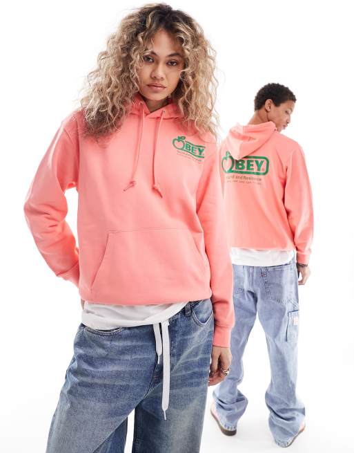 Obey - Unisex - Lyserød hættetrøje med grafik på ryggen