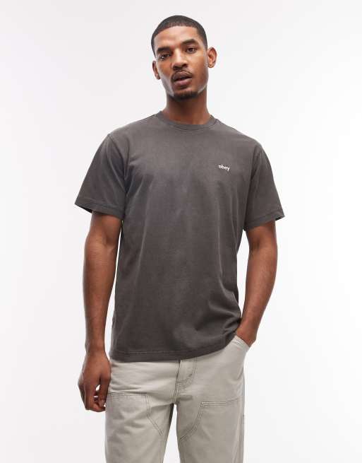 Obey - Vasket sort T-shirt med korte ærmer og print med små bogstaver