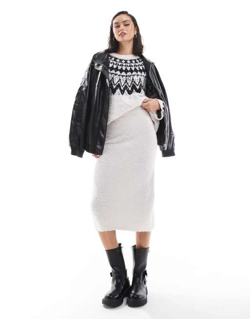 Object - Cremehvid midinederdel i plysset strik - Del af sæt