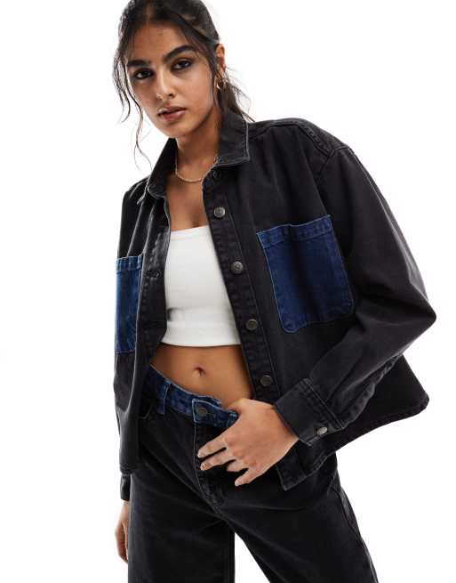 Object - Forvasket og sort overskjorte i denim med kontrastlommer - Del af sæt