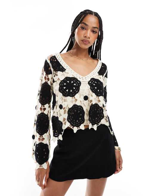 Object - Premium - Monokrom og langærmet top i hæklet materiale