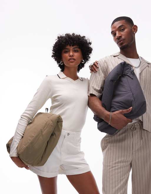 ÖLEND - Luca - Koksgrå og sandfarvet vendbar skuldertaske i nylon