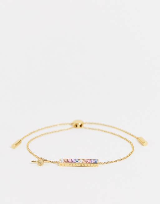 Olivia Burton - Rainbow Baguette - Guldfarvet armbånd og bi-smykkevedhæng