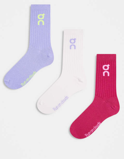 ON - Pakke med 3 par lange sokker med logo i pink og lilla