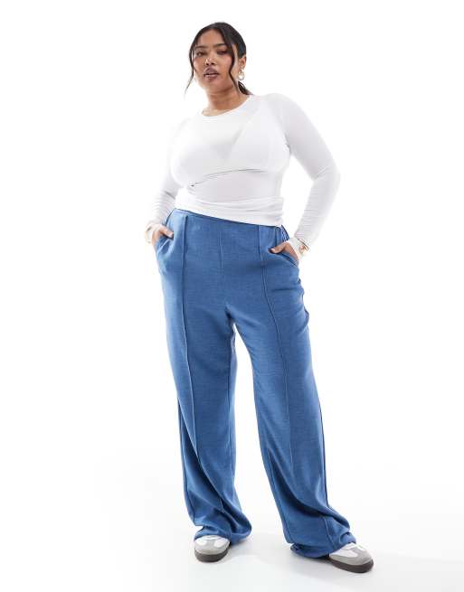 ONLY Curve - Blå bukser med vide ben og sømdetalje