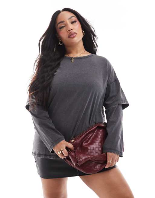 Only Curve - Forvasket grå langærmet lag-på-lag top
