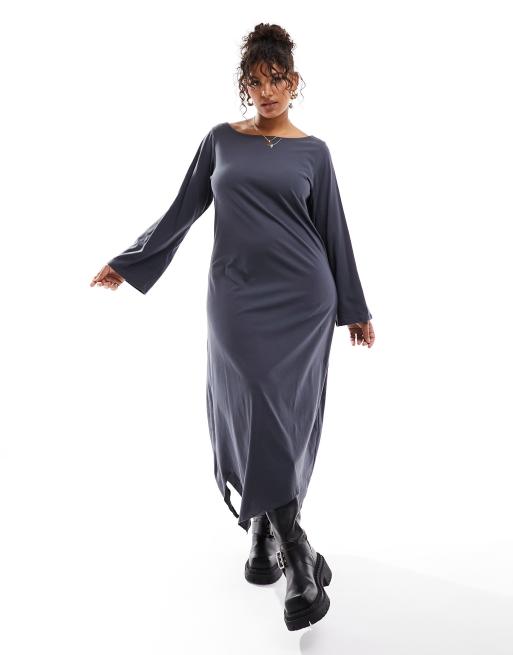 Only Curve - Koksgrå maxikjole med tørklædekant