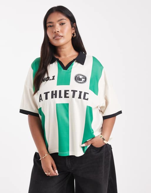 ONLY Curve - Oversized fodboldtrøje med grønne/hvide striber