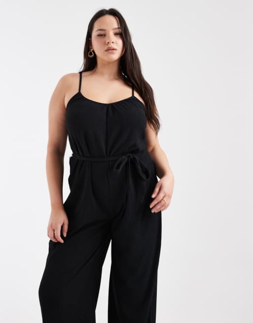 ONLY Curve - Sort jumpsuit med bindebånd i taljen