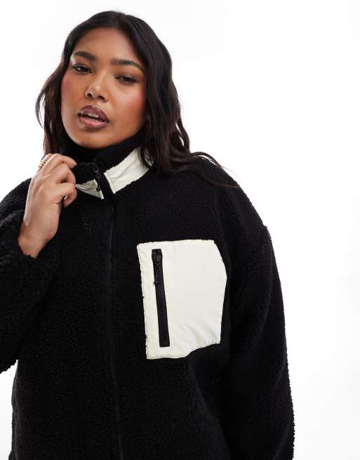 ONLY Curve - Sort oversized jakke med ståkrave i teddy-fleece